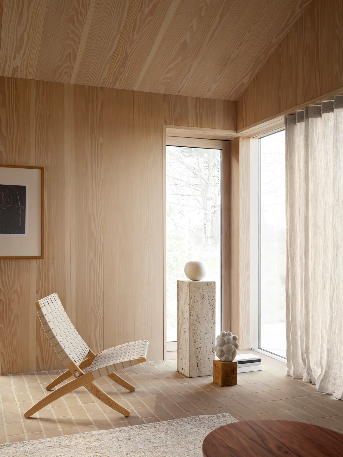 En el corazón de las creaciones de Carl Hansen & Søn hay un profundo respeto por la madera, un material natural cuidadosamente seleccionado por su calidad, carácter y sostenibilidad. La marca se abastece de maderas nobles recolectadas de forma responsable, como el roble, el fresno y el nogal, elegidas por su durabilidad y sus vetas únicas, que aportan calidez y vida a cada pieza.