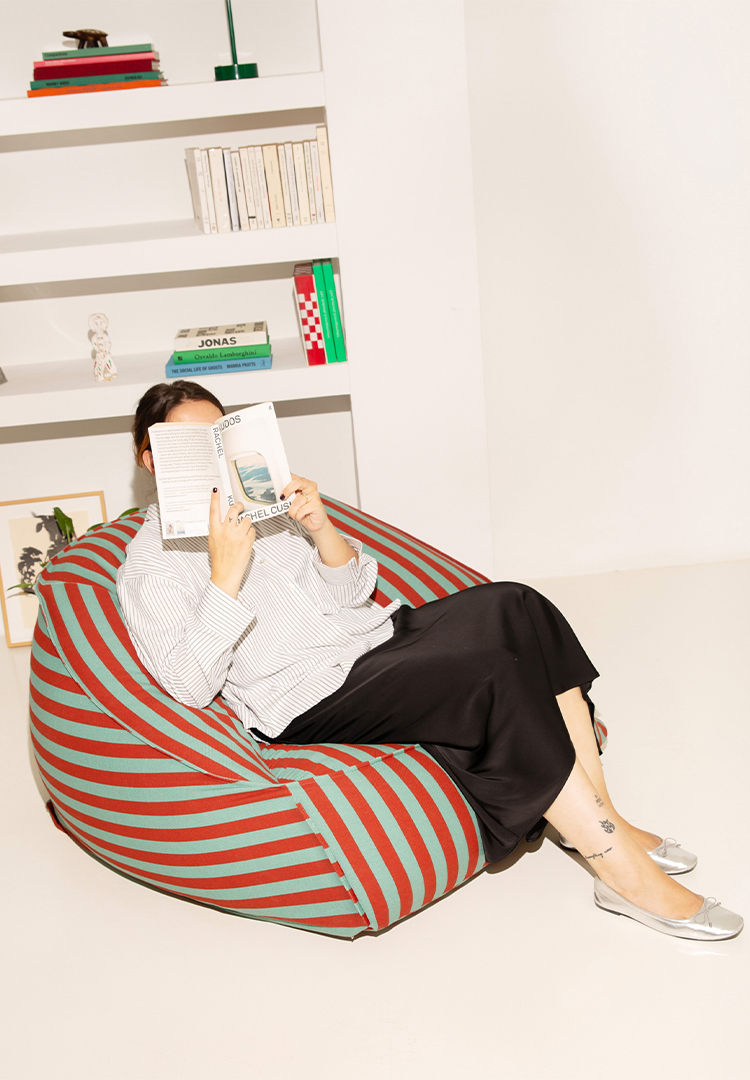 Ziggy, de la nueva colección, es un puf que marca la diferencia: elegante, casual y diseñado para adultos que disfrutan de un hogar con carácter. Con su acogedora forma de sillón y sus llamativos estampados a rayas, se convertirá en tu lugar favorito, ya sea en el rincón de lectura o en tu sala de música.