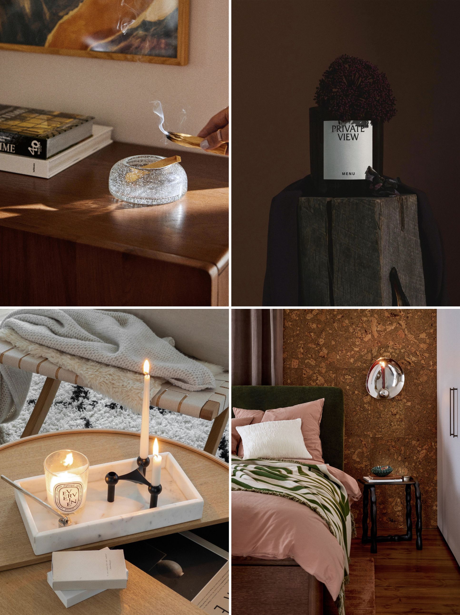 A subtle scented candle gives the space personality without overwhelming it. Small accessories – like bowls or trays – add character while keeping things tidy, making it easy for guests to keep their essentials within reach.
