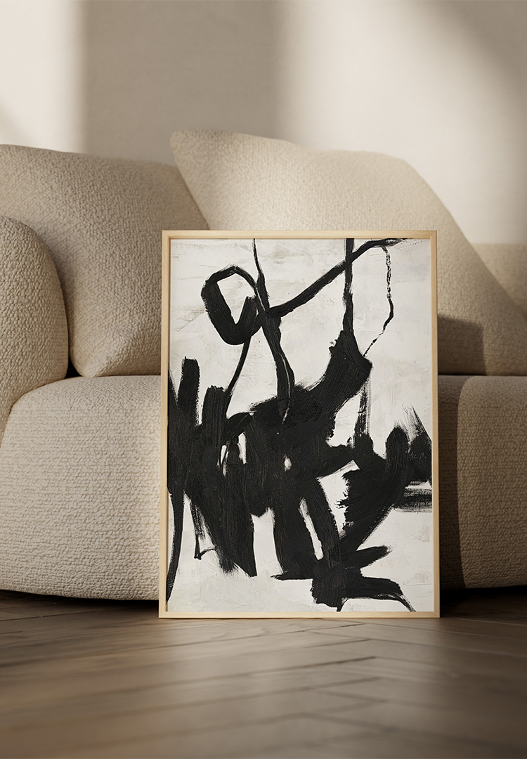 Hand-Painted Framed Canvas Print White Surface