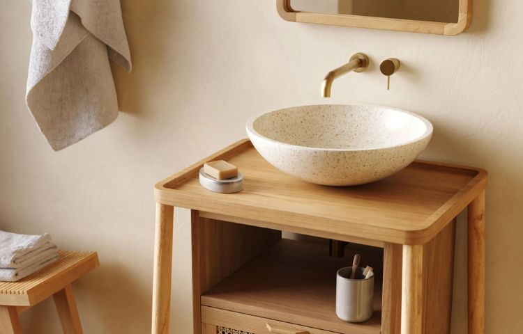 Teak Wood Bathroom Base Cabinet Taciana, W 60 cm