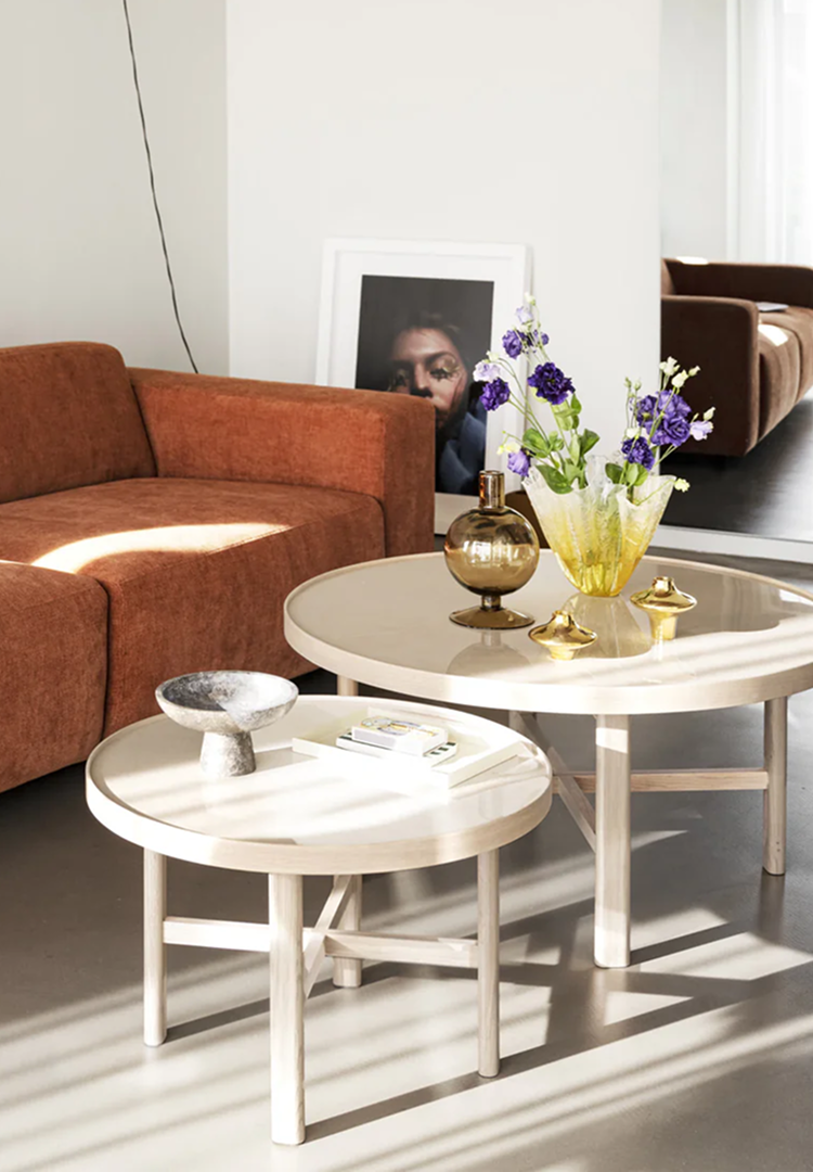 The round MARSDEN coffee tables by Rowico Home combine a light oak frame with a marble-effect tabletop, available in 60 or 90 cm diameters – a high-quality, contemporary design.