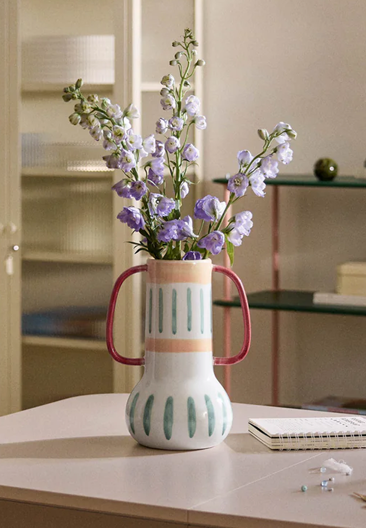 LISE, with its folkloric-inspired vessel shape and distinctive handles, has a striking presence – with or without flowers, it’s a true decorative piece